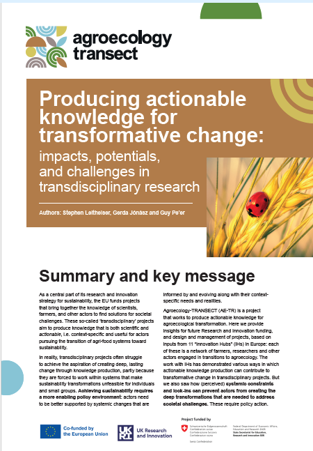 Our project, Agroecology-TRANSECT, built on insights from 11 European Innovation Hubs, investigates both the potential of actionable knowledge to support transformative change and the systemic barriers that limit it – emphasising the need for supportive policies that evolve with real-world contexts.